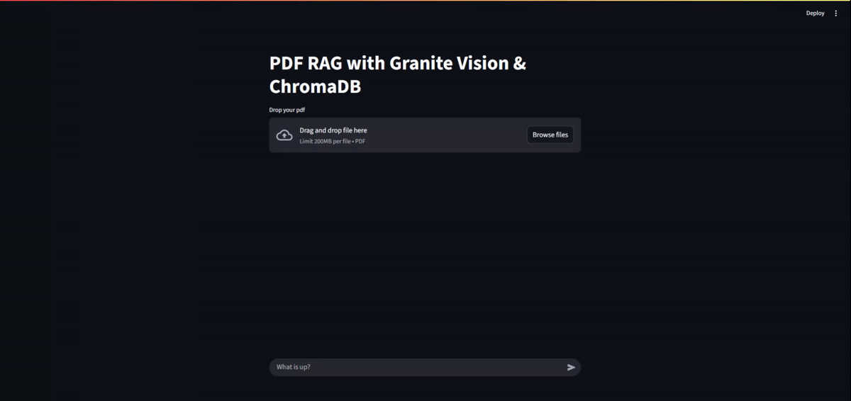 Users can upload a PDF, and the system will intelligently retrieve relevant information from both the text and the visual content to provide accurate, context-aware answers.